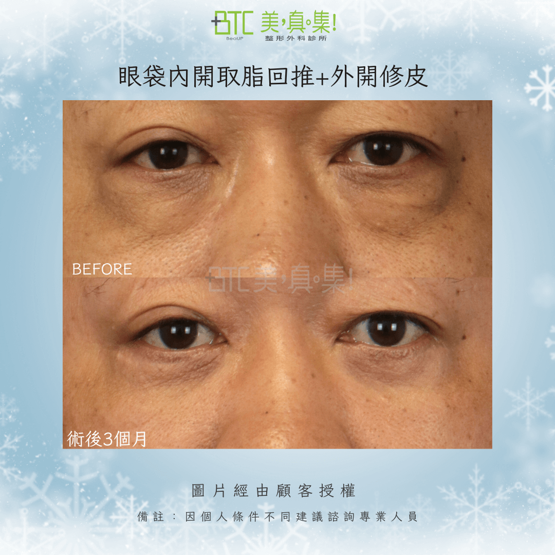 → 脂肪不只是局部堆積,而是整圈下眼眶結構失衡