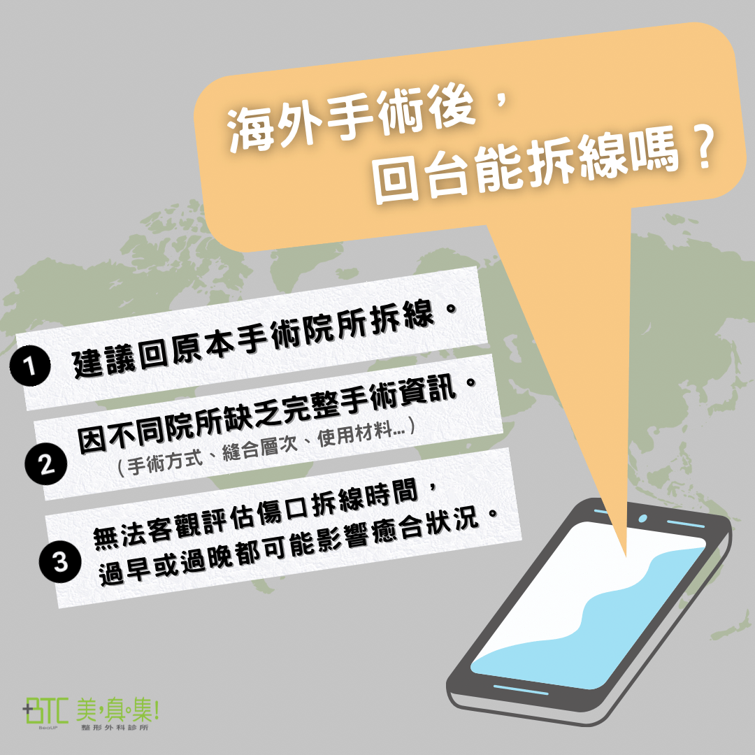 海外手術,可以回台拆線嗎?(高雄整形/美真集整形/美真集醫美/林明德醫師/高品質醫療服務)