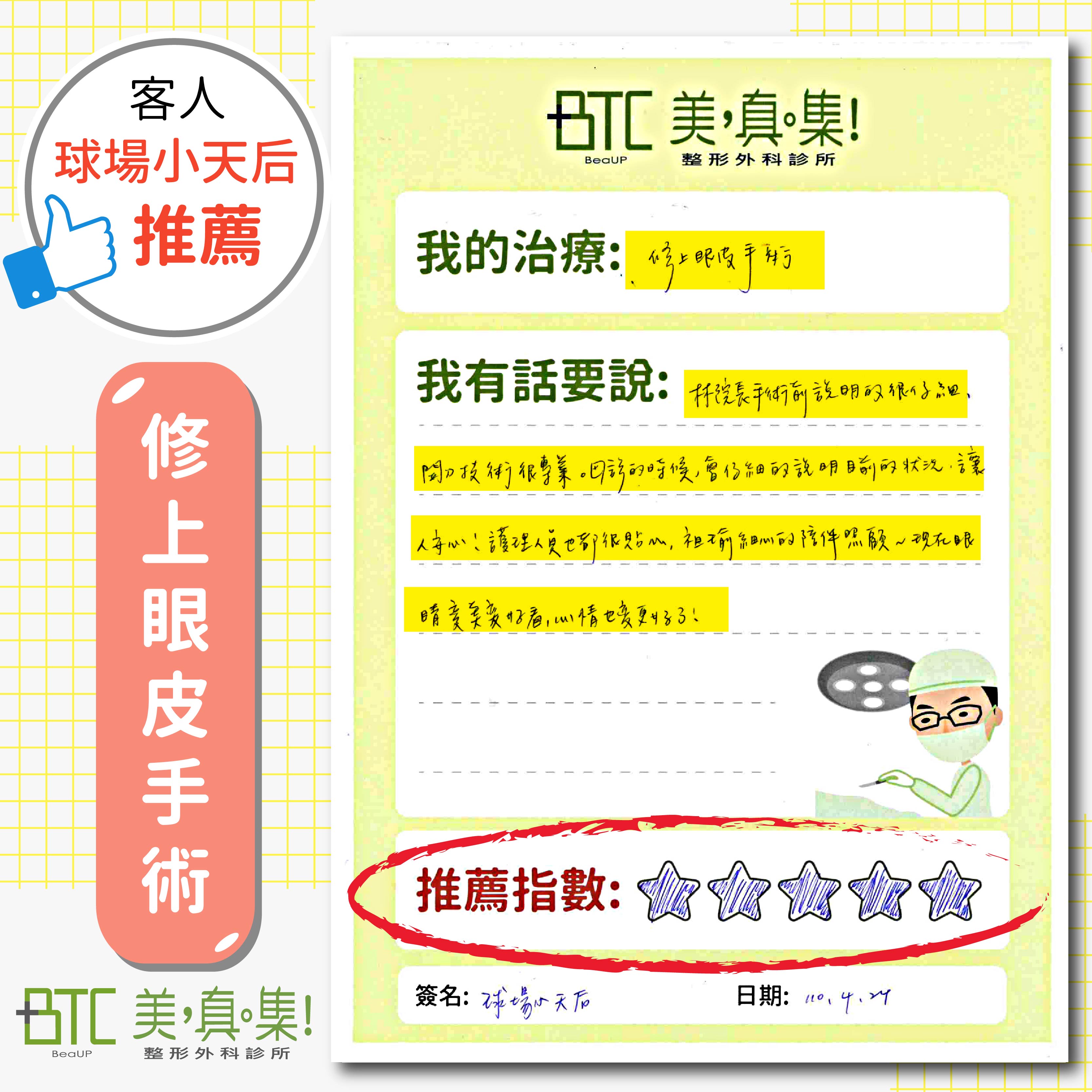 客人球場小天后推薦:修上眼皮手術