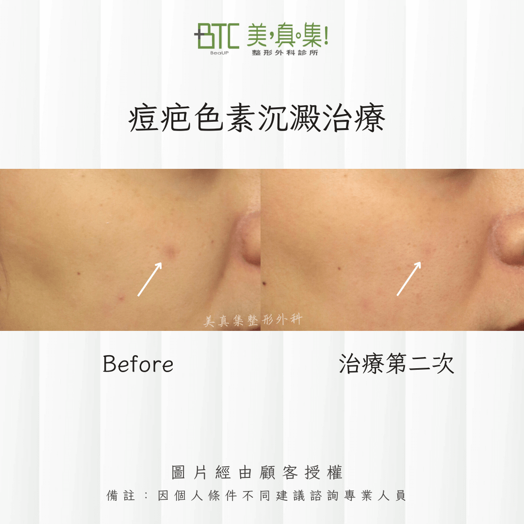 在林醫師的精準評估與專業治療下,僅僅第二次療程後,原本明顯的色素沉澱逐漸淡去。